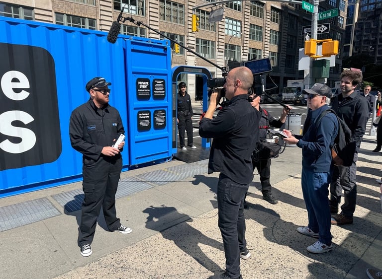 The experience began before boarding. The bright blue container stood out with a ticket kiosk and gumball machine dispensing custom swag, while brand ambassadors greeted guests, setting the tone for an engaging, immersive journey.