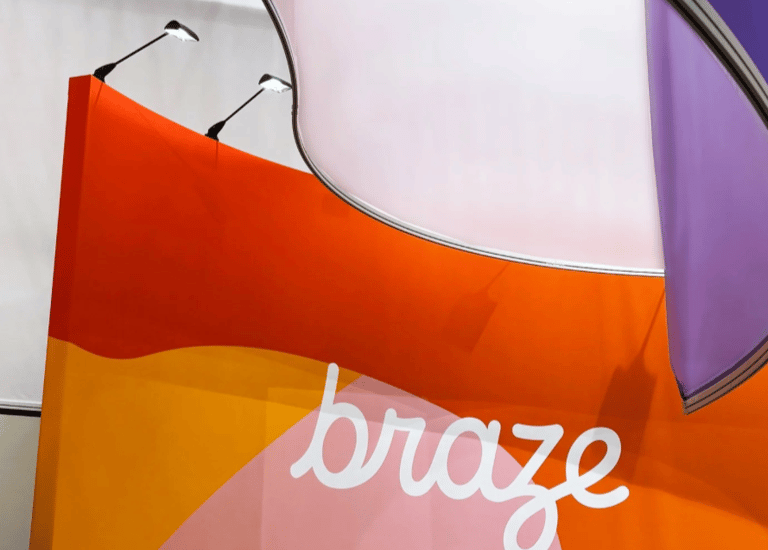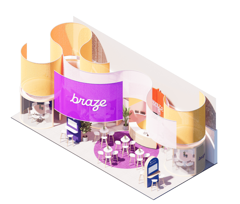 We designed an impactful stand for Braze at OMR 2025. Using a design that echoed their branding in a dynamic and fluid design language.