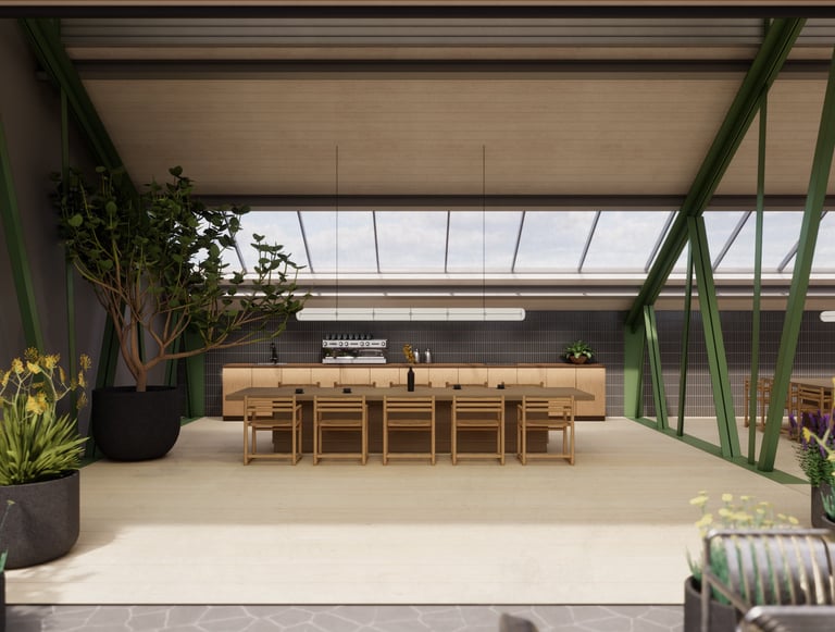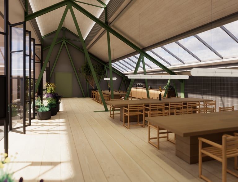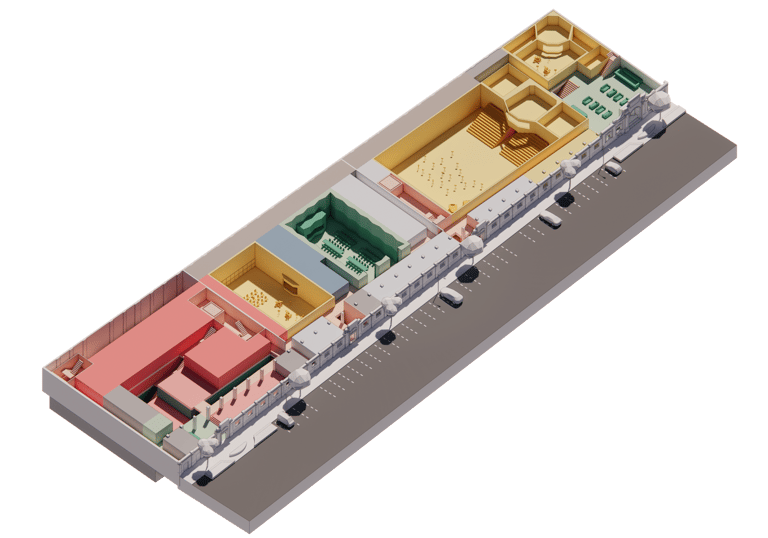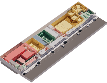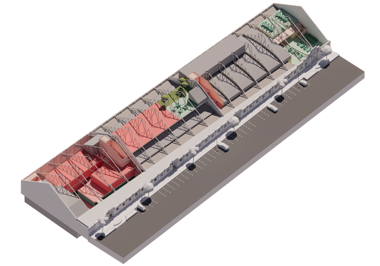 For the pitch, we detailed the massive site down to manageable information using colour coded renders. This allowed to show the extent of the works we were proposing and the vast scale of the site.