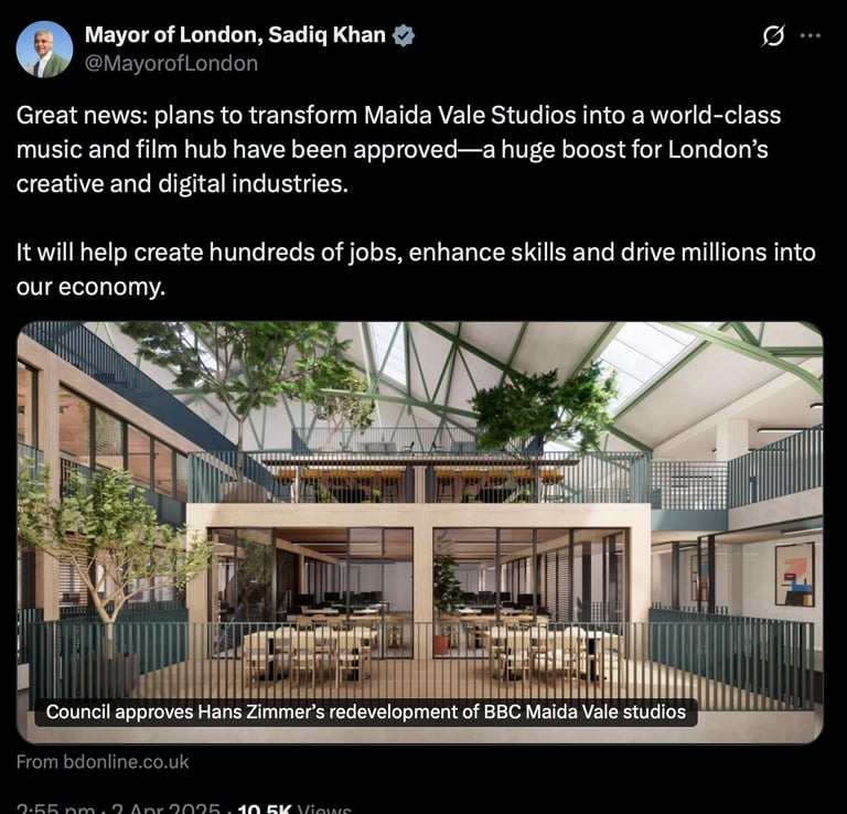 Maida Vale Studios, one of the BBC's most iconic music venues was sold to Hans Zimmer and Associates.