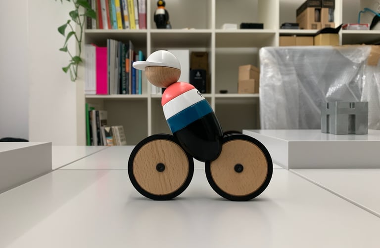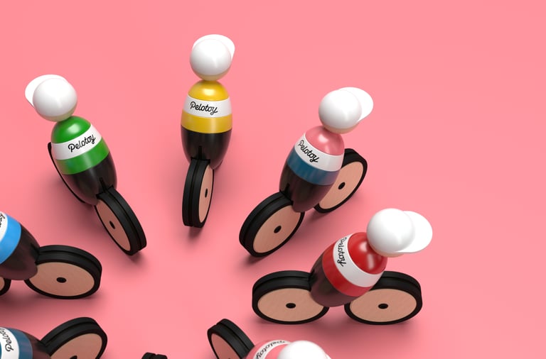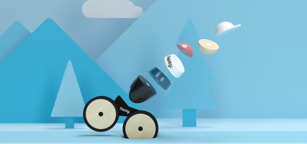 Ah, Pelotoy. This was such a fun in house project with Fourmation. Born from a love of wooden toys and the playfulness of the Peloton.