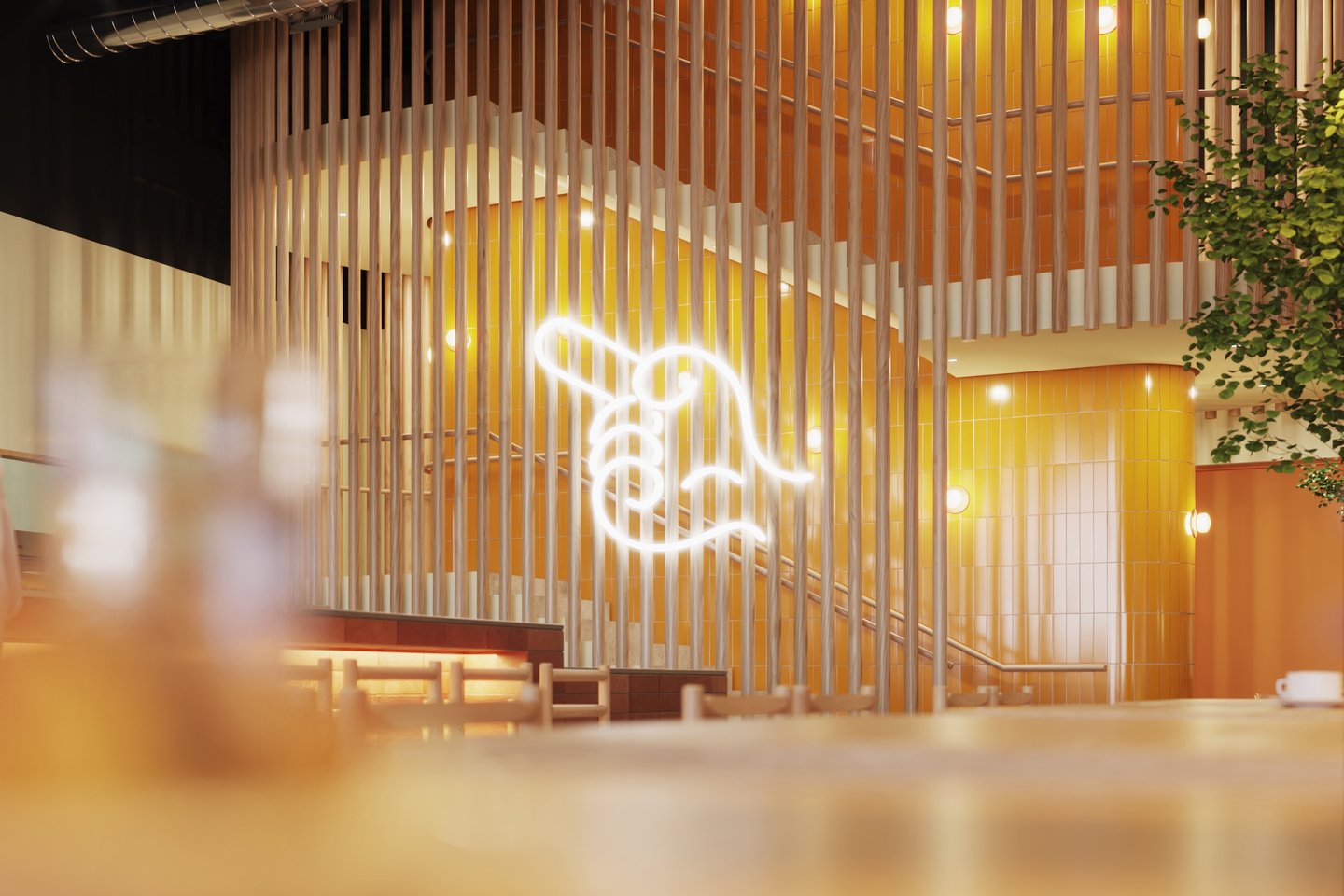 and translated it into a physical form through neon lighting and manifestations on the glazing