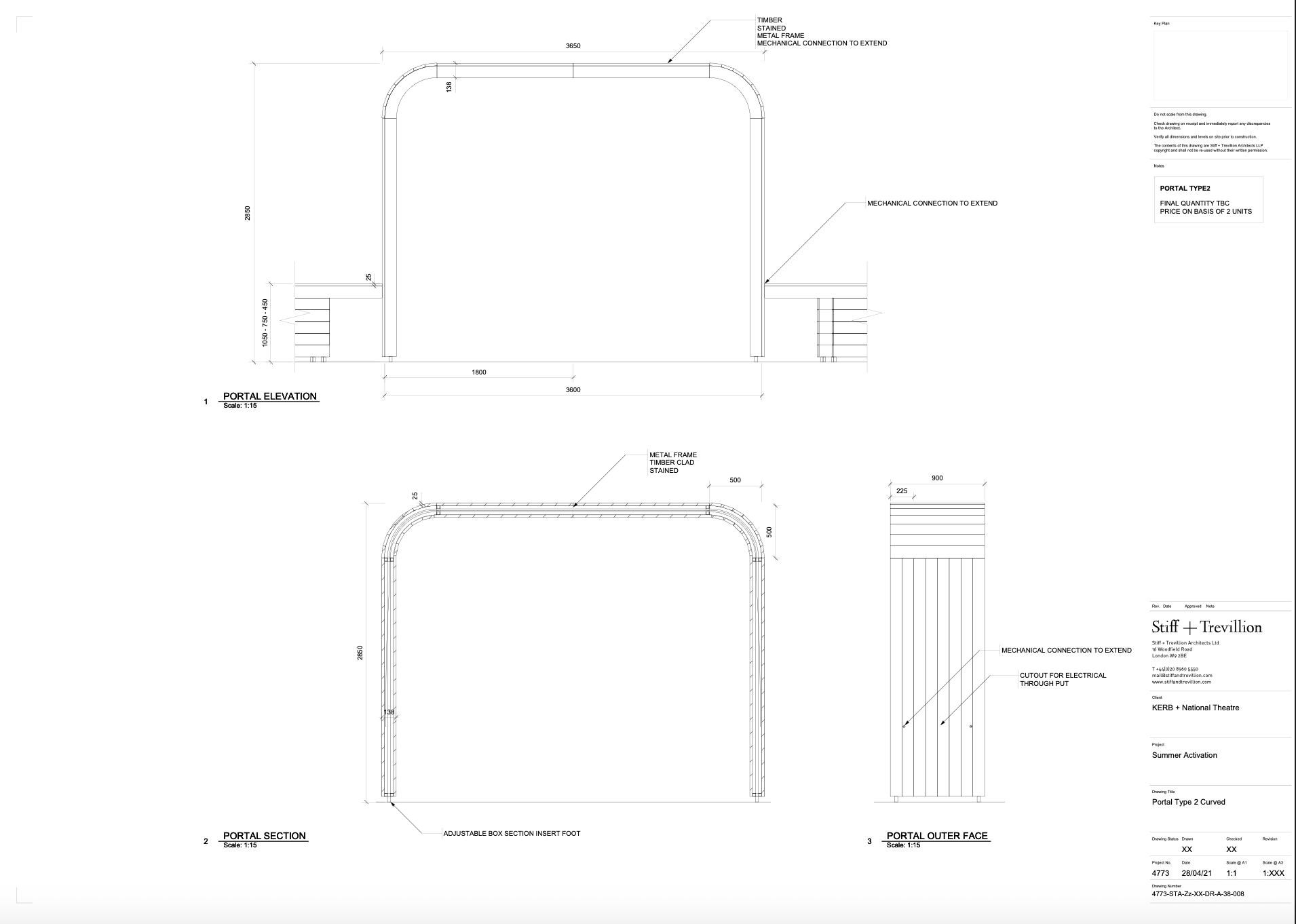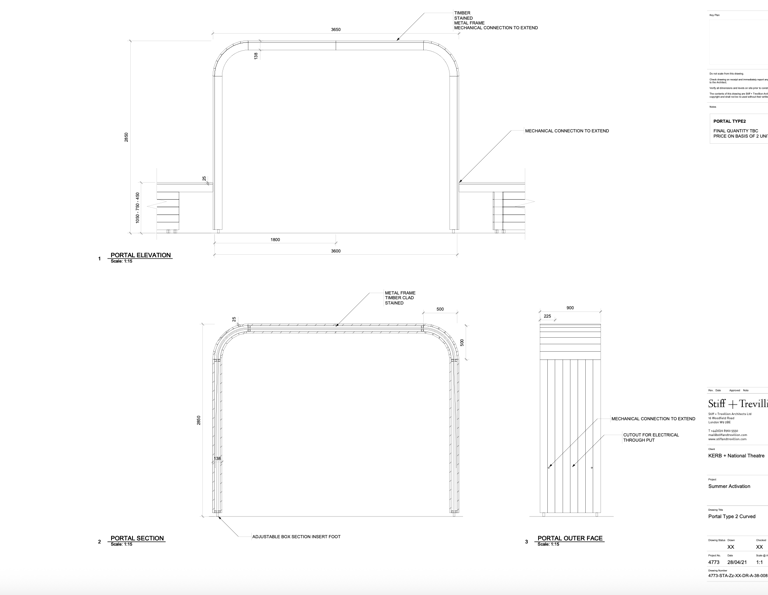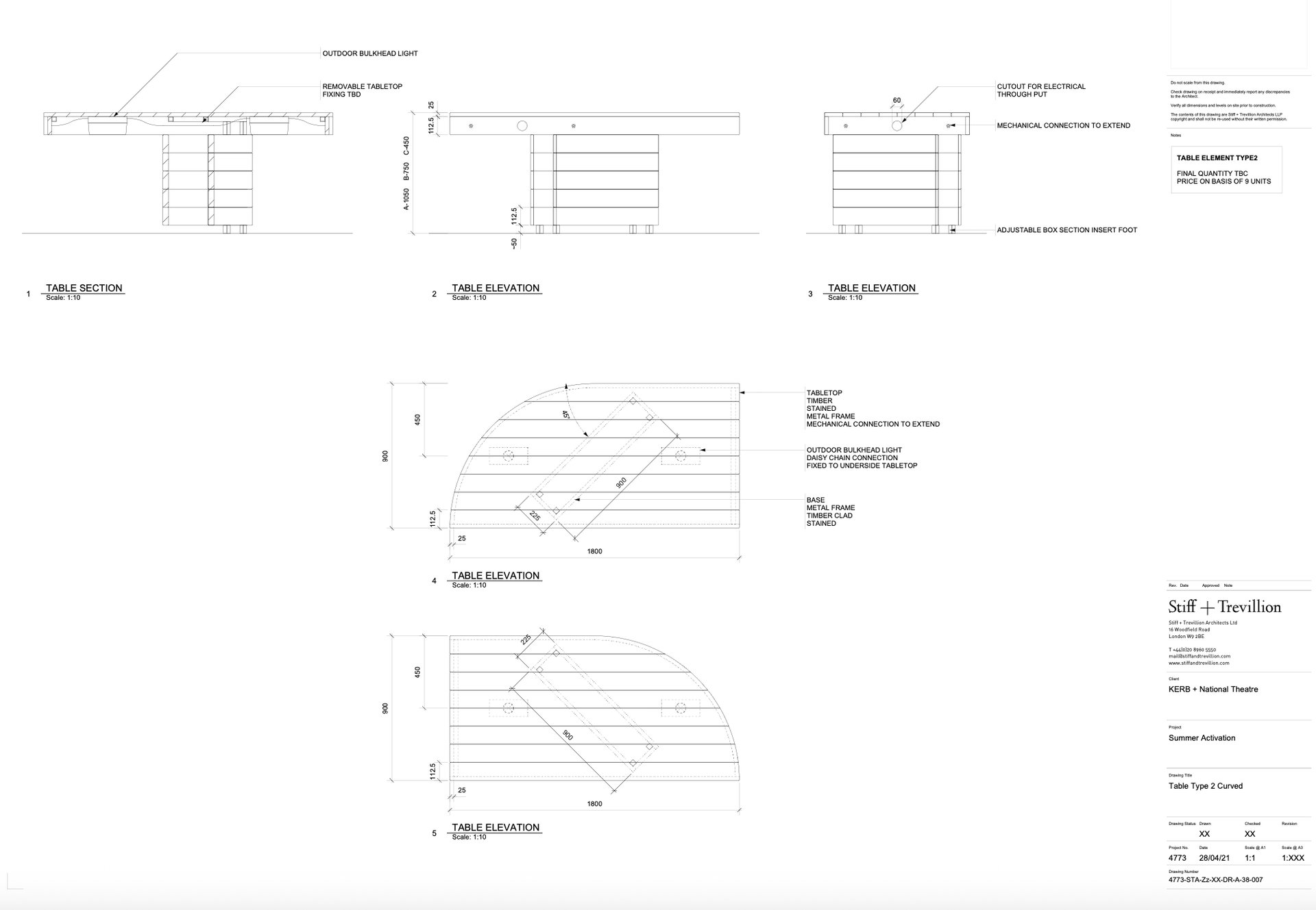 A drawing pack was created, advised to use highly recyclable materials such stained timber. The table has a modular design that can be adjusted, year on year.
